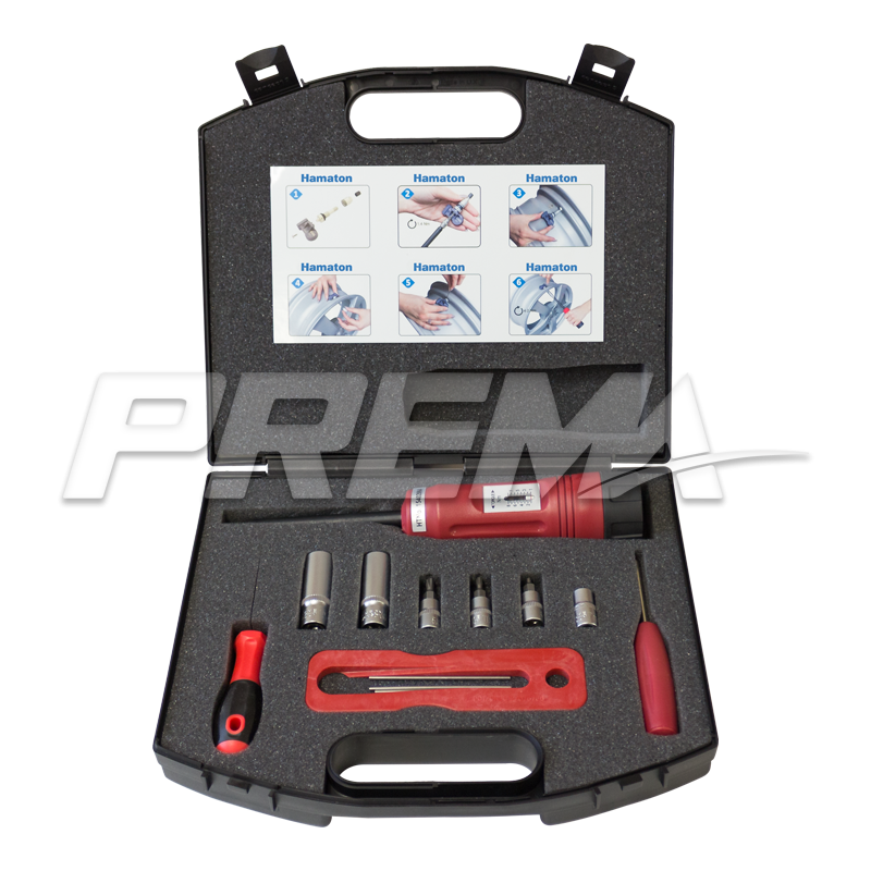 This TPMS tool kit comes complete with:- Calibrated torque tool including: